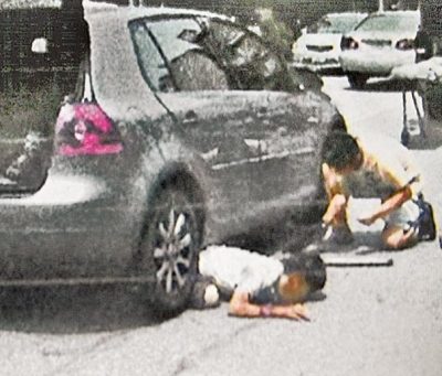 據(jù)新竹警方調(diào)查,死者江姓老翁(65歲)疑因天熱昏倒在路中,一輛黑色轎車經(jīng)過時曾停車察看,但隨即駛離,后來陸續(xù)約十輛車經(jīng)過,期間還有摩托車及行人路過,始終沒人理會江姓老翁。兩分鐘后,陳姓女子開車從旁邊大樓地下室出來,因上坡視覺角度問題,沒注意躺在地上的江姓老翁就直接輾過,路人看到大叫,陳女剎車察看并報警,但江姓老翁仍傷重不治身亡。