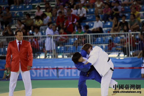 中國臺灣網8月15日深圳消息 第26屆深圳大運會比賽進入第3個競賽日,今天,在深圳會展中心舉行的女子柔道57公斤級和52公斤級比賽中,中華臺北選手連珍羚與陳思妤雙雙跌入敗部復活賽,最終無緣金牌。