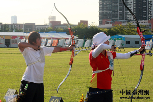 中國選手張云錄彎弓搭箭。(中國臺灣網 于斯文 攝)