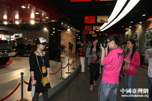 美好吉林—全國網絡媒體專題采風活動記者在“一汽”轎車博物館拍照留念。(中國臺灣網 吳斌 攝)