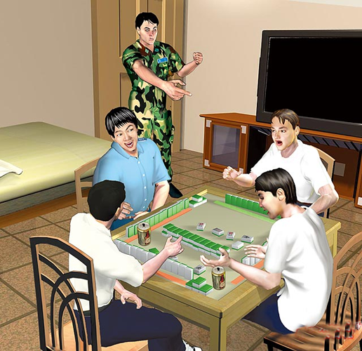 飛行員聚賭被逮示意圖,4名飛行員學員在寢室聚賭打麻將、喝啤酒,遭營區指揮官查房時活逮。圖片來源:臺灣媒體