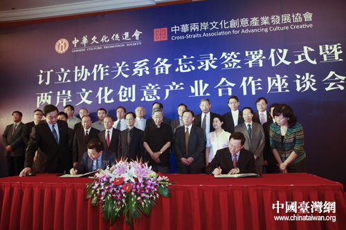 中國臺灣網9月7日北京消息 今天上午,中華文化促進會與來自臺灣的中華兩岸文化創意發展協會在京舉行訂立協作關系備忘錄簽署儀式。活動以“創意中華”為主題,致力于共同推動兩岸文化創意產業的發展。