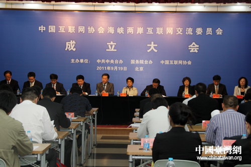 中國(guó)互聯(lián)網(wǎng)協(xié)會(huì)海峽兩岸互聯(lián)網(wǎng)交流委員會(huì)19日下午在北京成立。來(lái)自大陸互聯(lián)網(wǎng)業(yè)界的59家成員單位出席了儀式。(中國(guó)臺(tái)灣網(wǎng) 王偉 攝)