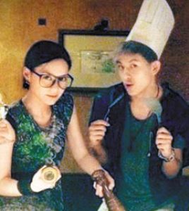 阿嬌(左)和貌似陳冠希的敖犬同吃鐵板燒。圖片來源于網絡
