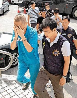彰化警方將詐騙集團(tuán)主嫌曾希哲(左一)等帶回警局偵訊。圖片來自網(wǎng)絡(luò)