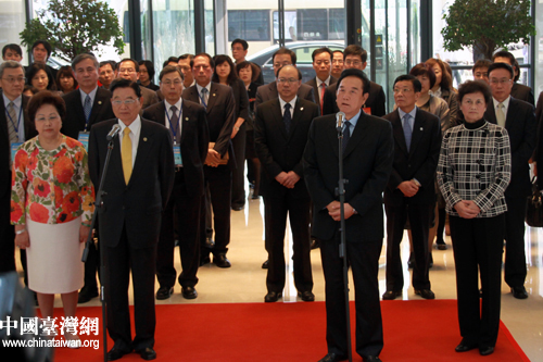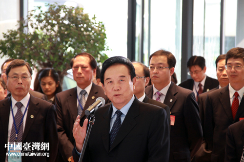 21日下午,海協(xié)會(huì)會(huì)長(zhǎng)陳云林在天津賓館與江丙坤率領(lǐng)的;鶗(huì)協(xié)商代表團(tuán)一行親切話別,圖為江丙坤臨別感言。(中國臺(tái)灣網(wǎng) 楊麗 攝)