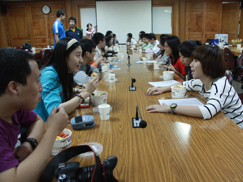 臺灣中山大學劇藝系的林昀澄與來自清華大學公共管理學院的王博雅進行了交流,王博雅良好的口才及對學業孜孜以求的精神給林昀澄留下了深刻印象。林昀澄表示,這是自己第一次跟大陸學生接觸,對大陸學生積極表達自己及其對學業、對知識的渴求很欽佩。