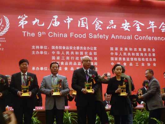 中國臺灣網11月25日消息 11月12日,第九屆中國食品安全年會在北京人民大會堂隆重舉行。本屆年會以“確保食品安全,構建和諧社會”為主題,由國務院食品安全委員會辦公室和國家發改委共同支持,農業部、海關總署、國家工商總局、國家質檢總局、國家食品藥品監督管理局、中國食品工業協會共同主辦,中國食品安全報社獨家承辦。會議級別高端,陣容強勁,規模宏大,受到了社會的廣泛關注與強烈反響,堪稱“年度食品安全品牌盛會”。