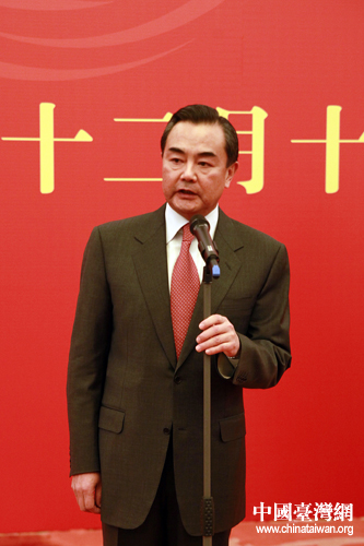 12月16日,紀念海峽兩岸關系協(xié)會成立20周年招待酒會在北京人民大會堂舉行。圖為中共中央臺辦、國務院臺辦主任王毅在招待酒會上致辭。(中國臺灣網(wǎng) 王偉 攝)