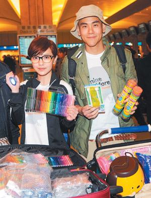 彭于晏準備補充營養品、糖果、跳繩、玩具黏土、畫筆及海綿寶寶貼紙;郭采潔得知當地缺乏電力供照明,特地準備手動充電手電筒,同時帶了色紙和彩色鉛筆,盼和當地的小朋友一起記錄這趟旅程。(中國臺灣網 李帥)