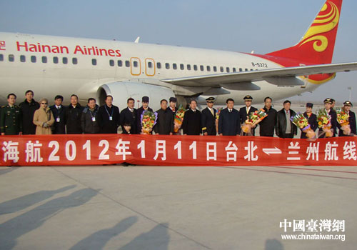 中國(guó)臺(tái)灣網(wǎng)1月12日蘭州消息 經(jīng)國(guó)家民航總局批準(zhǔn),由海南航空公司執(zhí)行的蘭州中川至臺(tái)北桃園機(jī)場(chǎng)的直航航班于2012年1月11日15時(shí)50分開(kāi)通。