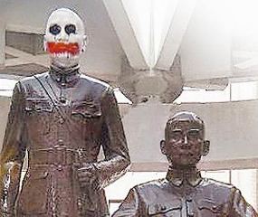 中國臺灣網1月16日消息 據臺灣今日新聞網報道,蔣介石銅像化身小丑?臺灣高雄中山大學的“孫中山與蔣介石銅像”,遭到不明人士惡作劇!只見蔣介石的嘴巴涂成大紅色,整顆頭被噴成白色,搖身一變成為電影《蝙蝠俠》中的反派角色小丑,校方表示:“惡搞噴漆非常不可取!”
