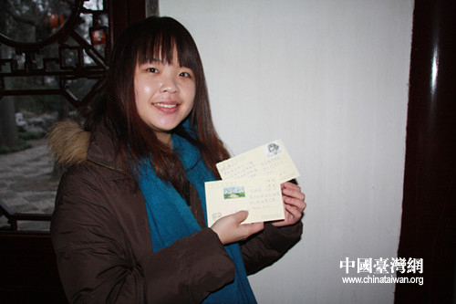 臺灣成功大學學生楊雅嵐寄給臺灣朋友的明信片。(中國臺灣網 栗琰 攝)