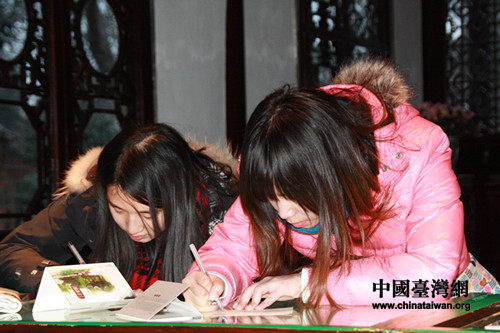 中國臺灣網2月4日蘇州消息,由宋慶齡基金會主辦的“追尋歷史足跡”——城際高鐵之旅活動開始了第三天的行程。今天,來自兩岸的青年學子參觀了杭州靈隱寺飛來峰及中國四大名園之一,蘇州著名的園林拙政園。每到一處,臺灣的同學都會購買當地特色的明信片,蓋上當地著名景點的郵戳。寫滿同學們內心感受的明星片將被寄給他們的父母親朋及大陸的好朋友。真可謂是“小小明信片 郵寄兩岸情”。
