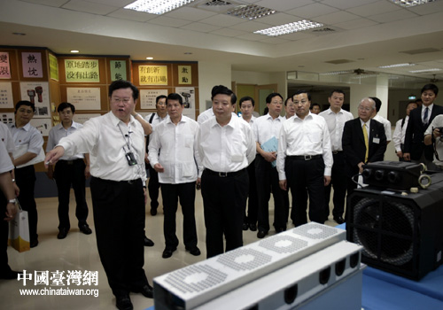 2011年7月14日,山東省省長姜大明在臺灣臺中訪問車王電子公司。(圖片來源:山東省臺辦)