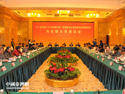 中國臺(tái)灣網(wǎng)2月23日肇慶消息 日前,由全國臺(tái)聯(lián)會(huì)長、全國人大常委會(huì)委員、華僑委員會(huì)副主任委員、中國僑聯(lián)副主席梁國揚(yáng)率領(lǐng)的十一屆全國人大臺(tái)灣團(tuán)代表、全國政協(xié)臺(tái)聯(lián)界別委員赴粵調(diào)研團(tuán)一行30多人到達(dá)肇慶市,對肇慶的臺(tái)資企業(yè)、涉臺(tái)工作進(jìn)行專題調(diào)研。