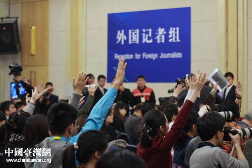 十一屆全國人大五次會議7日在梅地亞中心舉行記者會,商務部部長陳德銘就“擴消費促流通和發展對外經貿”的相關問題回答中外記者的提問。圖為提問現場。(中國臺灣網 王偉 攝)