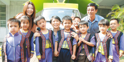 周美青昨天走訪屏東縣偏僻鄉(xiāng)鎮(zhèn)的小學時,跟小朋友們的合影。(圖片來源于:臺灣《聯(lián)合報》)