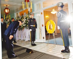 國民黨副主席、蔣經(jīng)國之子蔣孝嚴前往桃園頭寮謁陵。 來源:臺灣《中國時報》