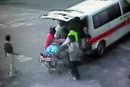 校方將游姓女學生和女嬰送醫畫面。圖片來自臺媒