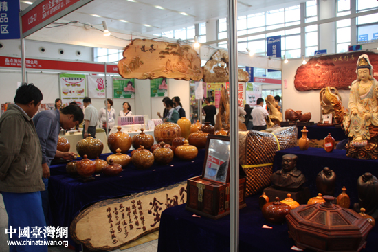 臺灣阿里山儈木工藝品引發觀展者興趣。(中國臺灣網 王思羽 攝)
