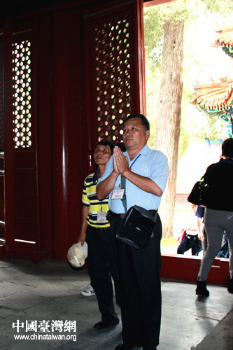 團員李先生正在向佛像禮拜。(中國臺灣網 劉承思 攝)