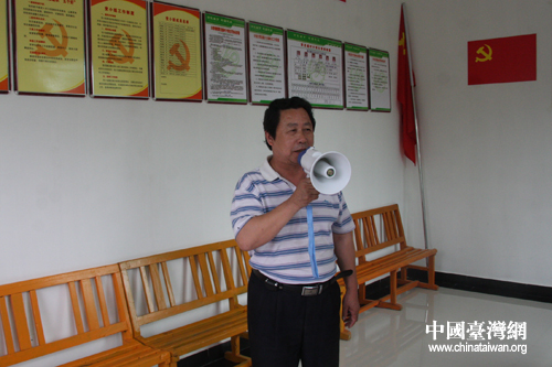 黃泥鋪村村支部書記朱學(xué)武向記者介紹當?shù)匦罗r(nóng)村建設(shè) (中國臺灣網(wǎng) 張曉靜 攝)