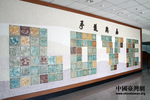 “手護嘉義”:充滿愛的love字母的手印墻。(中國臺灣網(wǎng) 李丹 攝)