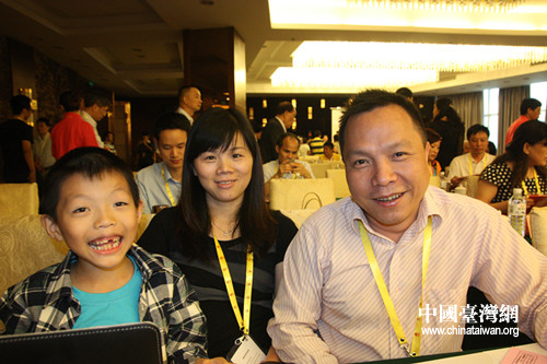 來自湖南長沙的鄧先生和來自臺北的太太以及8歲的兒子在論壇現場。(中國臺灣網 栗琰 攝)