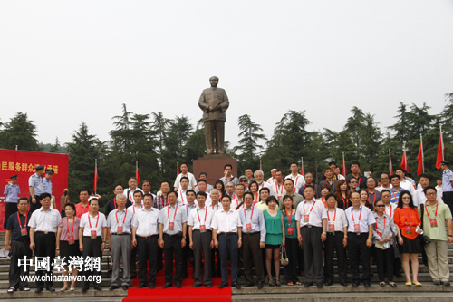中國和平統一促進會赴湘考察團全體成員在毛主席銅像前面合影。(中國臺灣網 王君飛 攝)