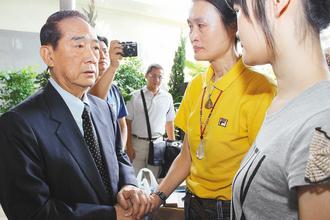 親民黨主席宋楚瑜(左)昨日慰問昔日隨扈賈圣行的家屬,賈妻蘇珍(右二)和女兒(右一)忍不住流下眼淚。(圖片來源:臺灣《聯合報》)