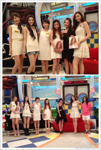 “甜心幫”上節(jié)目力挺許維恩(穿黑衣者)。(圖片來自新浪微博)