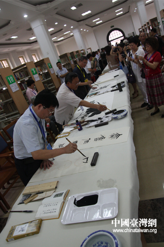 兩岸文化交流筆會上,兩岸書畫家同臺以丹青會友,用筆墨傳情(中國臺灣網 蕪同 攝)