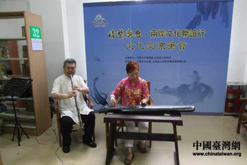 兩岸文化交流筆會上,主辦方特別請來古琴演奏家與簫演奏家在現場撫琴吟簫(中國臺灣網 蕪同 攝)