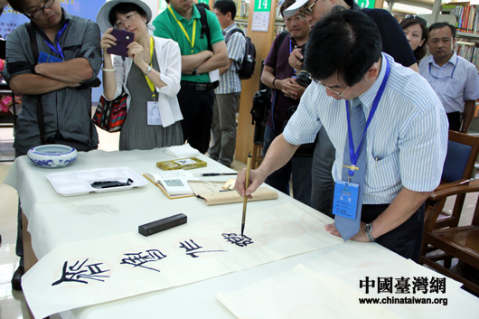 臺灣著名書法家陳志聲用篆書寫下對聯。(中國臺灣網 芮益芳 攝) 第1頁第2頁第3頁第4頁第5頁第6頁
