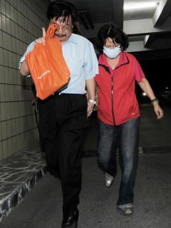 林益世的母親沈若蘭(右)4日到案,訊后以200萬(wàn)新臺(tái)幣交保,與律師步出臺(tái)檢方特偵組。圖片來(lái)自臺(tái)媒