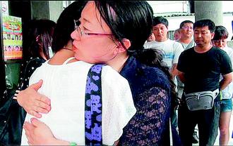 大陸領(lǐng)隊(duì)葉云(擁抱者右)輕擁駕駛的女兒勸慰:“你要堅(jiān)強(qiáng)、要照顧媽媽。”后面的團(tuán)員都紅了眼眶。圖片來(lái)自臺(tái)媒