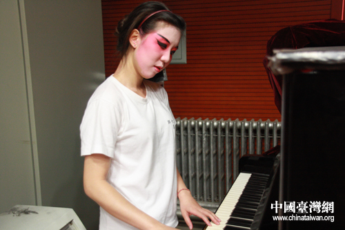 在后臺(tái)彈鋼琴的昆曲演員。(中國(guó)臺(tái)灣網(wǎng) 孟雅詩(shī) 攝)
