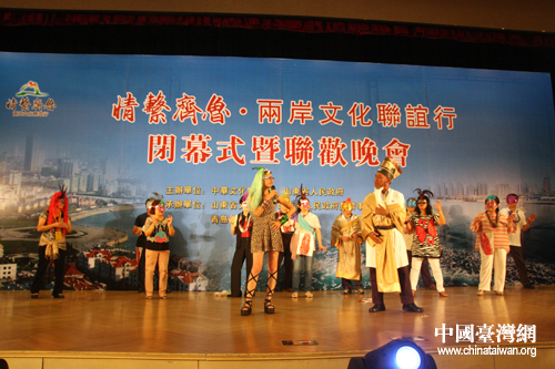 中國臺灣網7月13日北京消息 “情系齊魯——兩岸文化聯誼行”于7月9日在青島舉行了隆重的閉幕式。在閉幕式之后,依往屆慣例,兩岸文化屆人士一起舉行精彩的大聯歡。這次大聯歡不分專業行當,不分大陸臺灣,以參訪過程中的五輛大巴旅行車為表演集體,大巴車中的兩岸文化界人士攜手各顯其能,一起打造出一臺別開生面的精彩晚會。