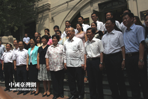 吳伯雄與遭遇車禍的旅游團團員合影。(中國臺灣網(wǎng) 馬迪 攝)