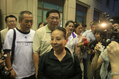 嘉義縣長張花冠(前)卷入收賄疑云,1日清晨獲得交保之后,面帶微笑走出嘉義地檢署。(圖片來自臺媒)