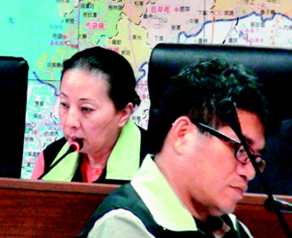 嘉義縣長張花冠(后排左)昨晚現(xiàn)身主持蘇拉緊急應(yīng)變中心會(huì)議。來源:臺(tái)灣《聯(lián)合報(bào)》