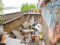 坑人洞 新北市三峽清水街疑地下涵管無(wú)法排水,逆流掏空地基,造成路面坍塌5公尺深,造成1人死亡。來(lái)源:臺(tái)灣《中國(guó)時(shí)報(bào)》
