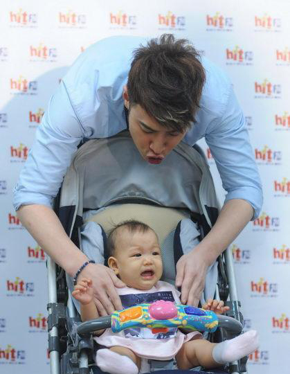 他習(xí)慣用“吃”宣泄壓力,那次也不列外,一路從68公斤胖到84公斤,看到鏡中的自己嚇了一大跳,還好發(fā)片壓力加上驚人意志力已讓他恢復(fù)到理想體重。今天到電臺(tái)宣傳,他抱著嬰兒象征專輯誕生,嘴里嚷嚷:“看著好朋友(唐志中)的小孩覺得很幸福,自己也很想要”,但孩子一到他手上便嚎啕大哭,完全招架不住。