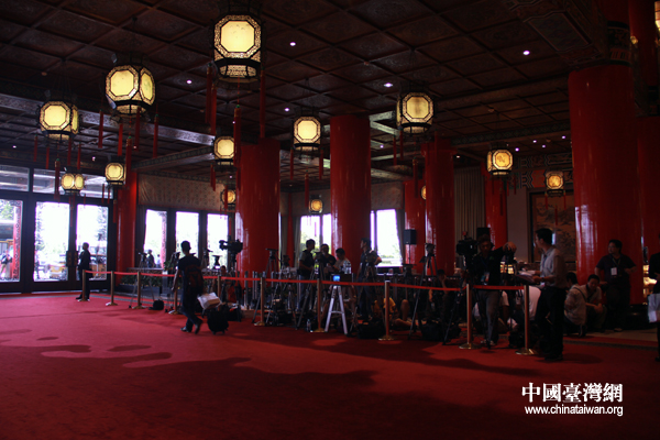圓山飯店入口處大批媒體嚴(yán)陣以待迎接陳云林一行抵達(dá)(中國(guó)臺(tái)灣網(wǎng) 李徽 攝)