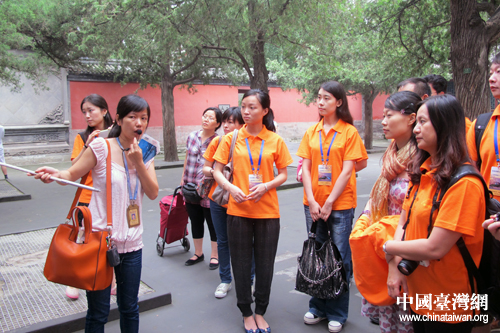頤和園中,導游為大家講解景點的相關知識。(中國臺灣網 張潔 攝)