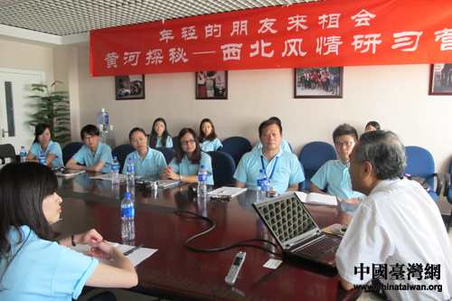 中央民族大學嚴慶教授與兩岸學子進行熱烈的交流探討。(中國臺灣網 張潔 攝)