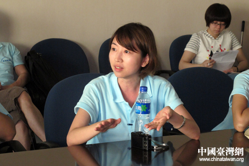 來自日本千葉大學的臺籍留學生陳柏君向主講老師提出問題。(中國臺灣網 張潔 攝)