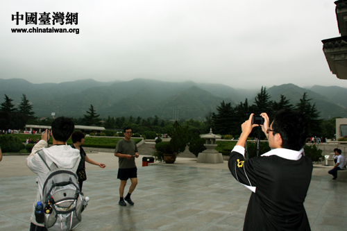 13日早晨,12名臺(tái)灣在校大學(xué)生和6名來(lái)自北京的大學(xué)生志愿者乘車來(lái)到西安市臨潼區(qū)驪山之北,秦始皇帝陵的所在。微微細(xì)雨中,驪山秀美的景色讓人為之精神一震,聽(tīng)說(shuō)群山之中有一座埋藏著未曾開(kāi)挖的秦始皇陵墓,同學(xué)們紛紛舉起相機(jī)拍照留念。