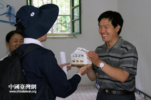 慈濟基金會的義工為每一戶災民送上親手制作的平安符。(中國臺灣網 馬迪 攝)